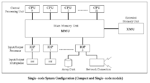 Das Memorysubsystem zählt weltweit zu den schnellsten Shared Memory-Architekturen. Erreicht wird diese hohe Leistung durch den Einsatz von schnellen SSRAM Modulen (Synchronous Static RAM), eine Lese- oder Schreiboperation benötigt nur 16ns. Diese SSRAM-Module sind jene Bausteine, die heute in den modernsten RISC-Prozessoren als Cache-Memory eingesetzt werden. Die Anbindung der Prozessoren an den Hauptspeicher erfolgt mit einer Bandbreite von 16 GByte/sec pro CPU. An diesem Hauptspeicher ist ein Erweiterungsspeicher in SDRAM Technologie (Synchronous Dynamic RAM) angeschlossen, der als Filesystemcache oder für Programmdaten genutzt werden kann.