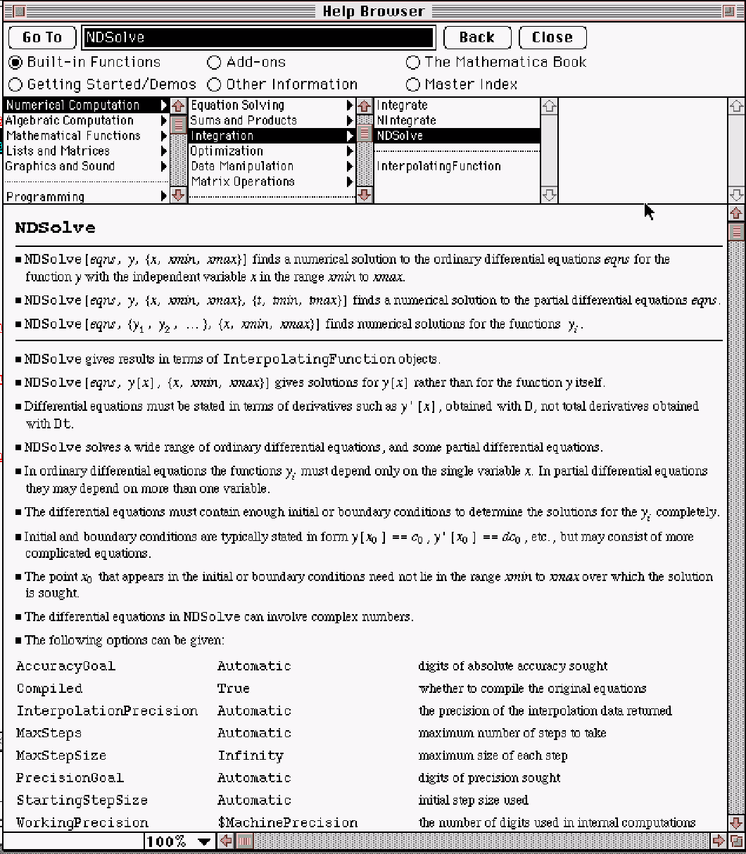 Abb. 3: Die komfortable Helpfunktion von Mathematica.