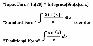 Das neue Mathematica FrontEnd ist nun wirklich eine Mathematik-gerechte Umgebung. Formeln und mathematische Ausdrücke können so ein- und ausgegeben werden, wie es unseren Vorstellungen entspricht. Es wird aber niemand dazu gezwungen, Mathematica läßt jedem die freie Wahl, auch die alte, von früheren Versionen vertraute Eingabeform zu wählen. Dazu kann jede Zelle in der